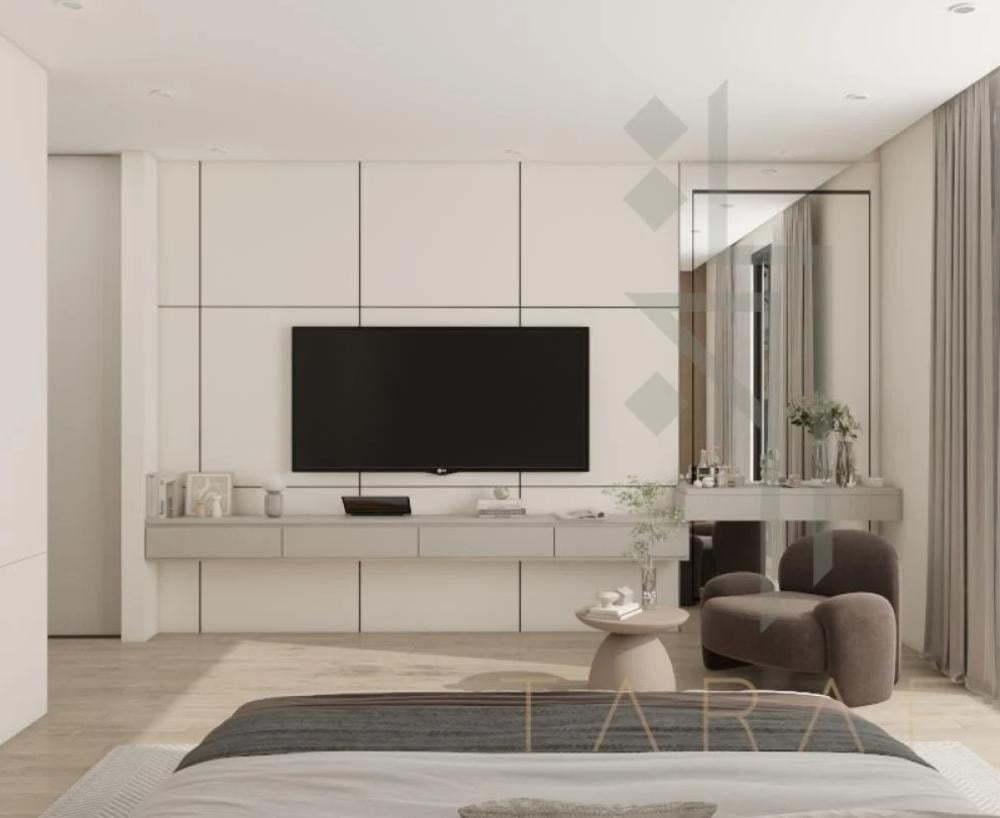 تريدي تصميم غرفتك مثل غرف نوم فندقية مودرن؟ ترف للتصميم يقدم لكي خدمة تصميم غرفة نوم فندقية بتصميم مودرن أنيق بمساحة 5x4 م تلبي ذوقك الراقي.