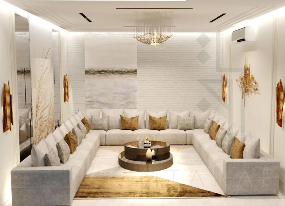 - تصميم غرفة جلوس نيوكلاسيك ارت ديكو هو تجسيد للفخامة والأناقة مع لمسة عصرية تلائم الذوق الرفيع.