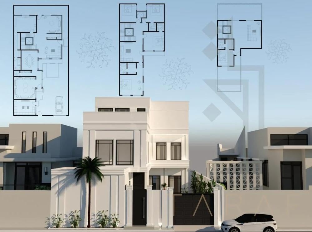 - تصميم واجهة نيو كلاسيك توفر خيار التراخيص والمخططات الهندسية المخصصة لمدينة الرياض، مما يعني سرعة وفعالية في إجراءات البناء.